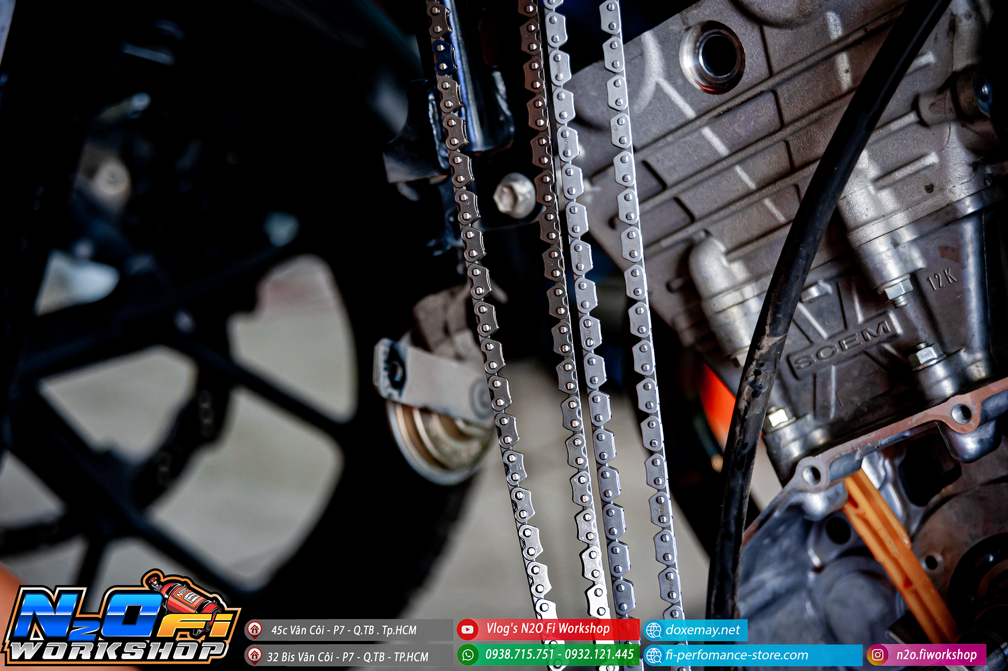 - Để khắc phục tình trạng đó : #N2O_Fi_Workshop đã thiết kế và gia công riêng hẳn một dòng sên cam. Có thể đáp ứng tất cả các nhu cầu khắc nghiệt, dù là khi anh em đang sử dụng khi đi tuor , racing hay là xe của Anh em chạy liên tục với cường độ cao hằng ngày.