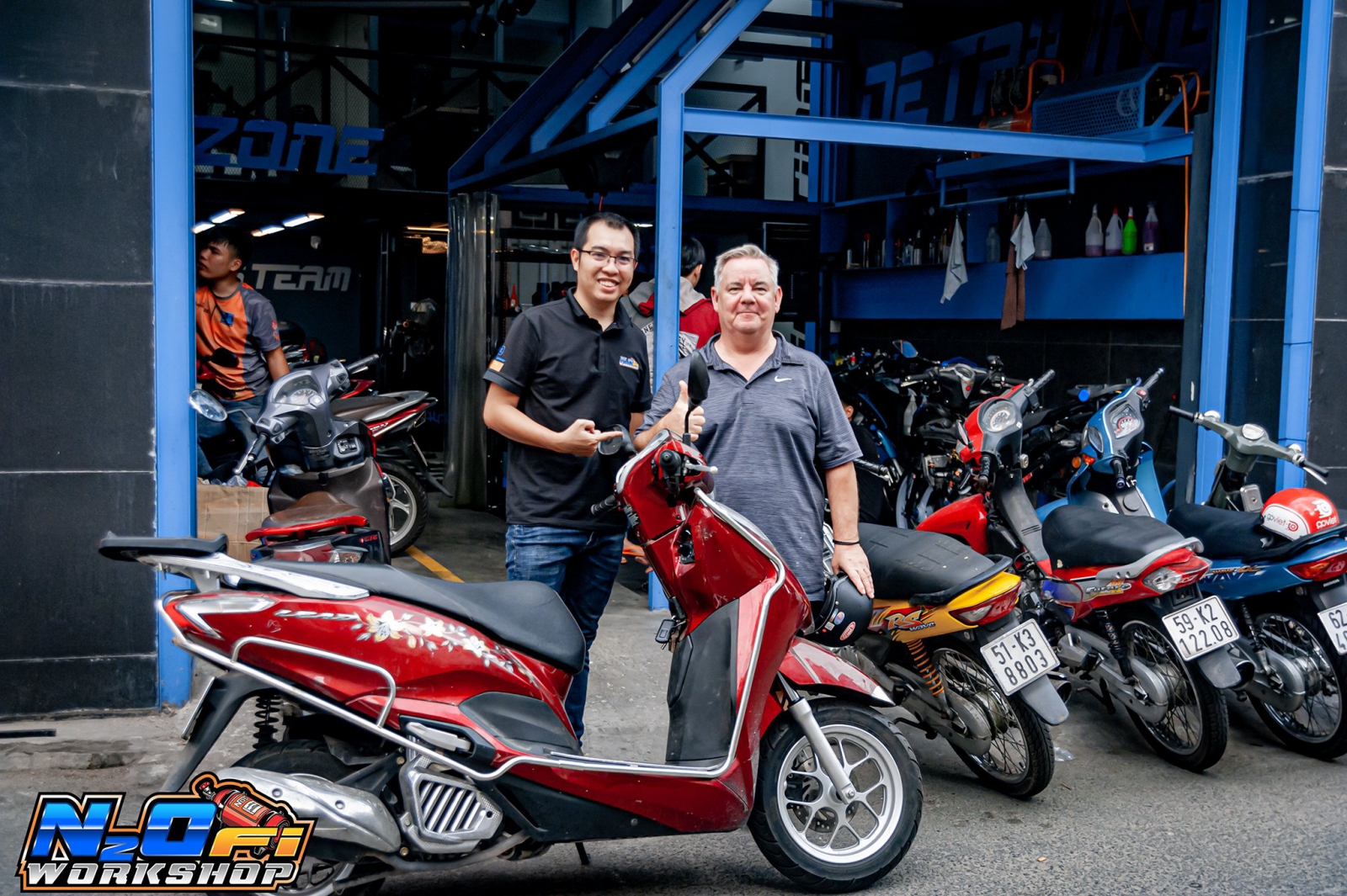 Khách Hàng Người Nước Ngoài Đến Sử Dụng Dịch Vụ Vệ Sinh , Bảo Dưỡng , Nâng Nấp Phuộc Trước Của N2O_Fi_Workshop .